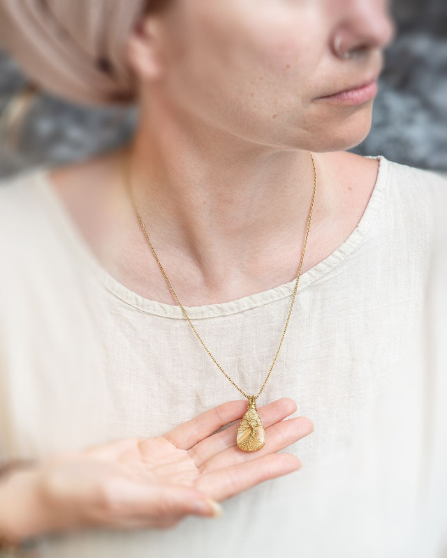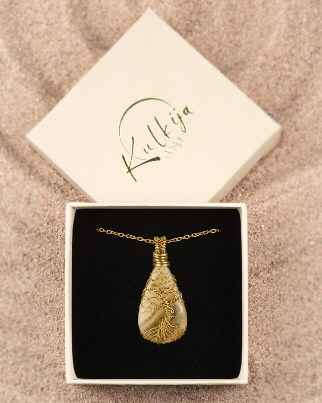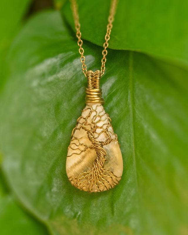 Materiaalit: keltainen aragoniitti, messinki. Kaulaketju: kullattu ruostumaton teräs