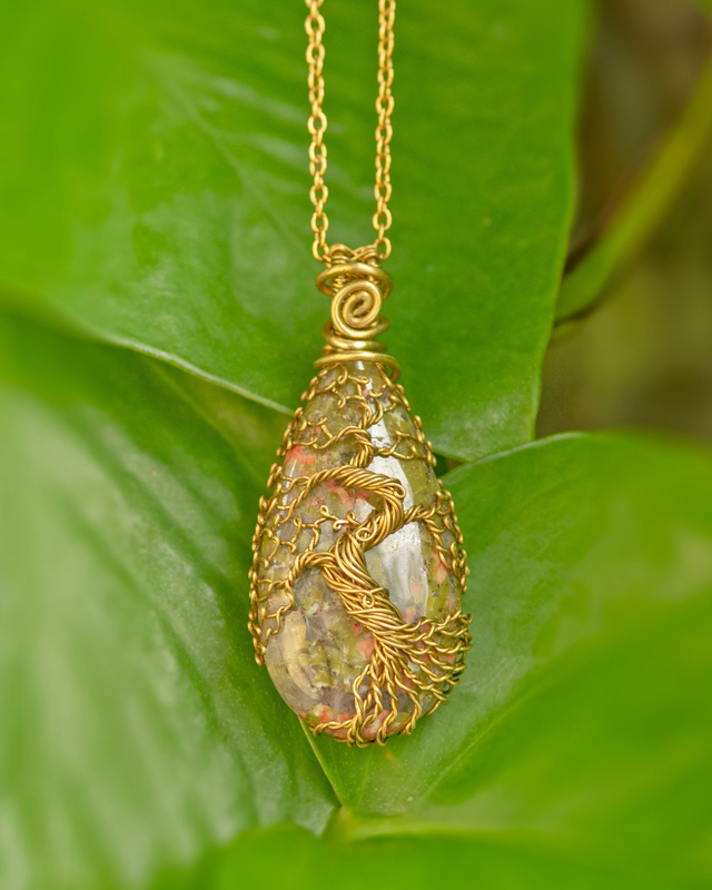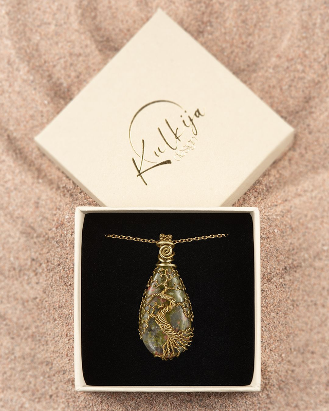 Materiaalit: unakiitti, messinki. Kaulaketju: kullattu ruostumaton teräs