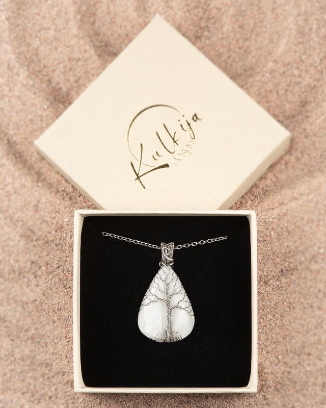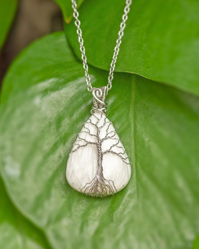 Herkän, korkeavärähteisen valkoisen skolesiitin pariksi kietoutui nuori, lupaava koivu. Nuori koivu symboloi puhtautta, elinvoimaa ja kannustaa uusiutumaan. Riipuksen skolesiitti tuo mahdolliseen muutosprosessiin rauhaa ja levollisuutta ja auttaa siten myös unen laadun parantamisessa. Sillä lepo on tärkeä vaihe kaikessa uudistumisessa.